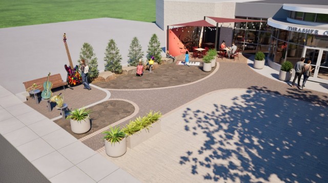 The current eight stall parking lot will be transferred into an inviting outdoor area with a sculpture garden and mural, interactive outdoor instruments, covered seating, and a patio space. The project will also include a stunning new façade and digital displays.
