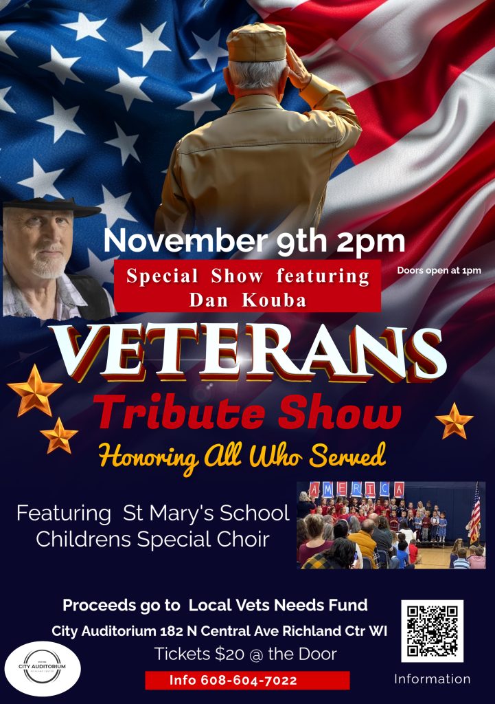 This Sunday, Nov. 9, join The City Auditorium for a very special Veterans Tribute Show featuring Dan Kouba. The show, honoring all who served, will feature The St Mary’s School Children’s special Choir.