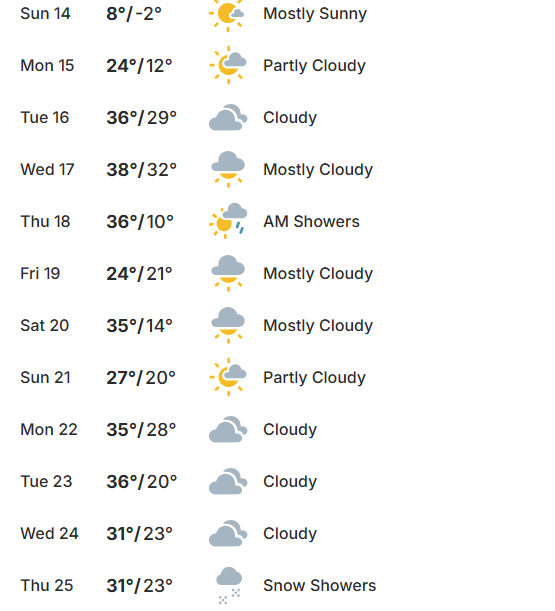 For the greater Richland County area, Saturday looks to bring the coldest weather of the next week. Saturday we can expect cloudy skies early and becoming partly cloudy later in the day with a high temperature of just 4 above. Saturday night into Sunday morning shows bitterly cold conditions with clear skies. Our overnight low could reach -13 with winds NW at 5 to 10 mph. We could feel actual temps of -2 to -5 both Friday and Sunday nights. Sunday, we stay in single digit highs at 8 above. Our rebound begins Monday with a high of 24 degrees, and we will stay with highs in the 20 and 30’s all the way through Christmas day.